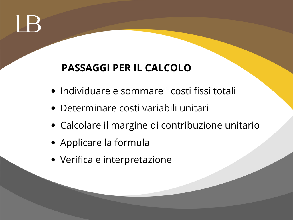 Il denominatore della formula rappresenta proprio il margine di contribuzione unitario.