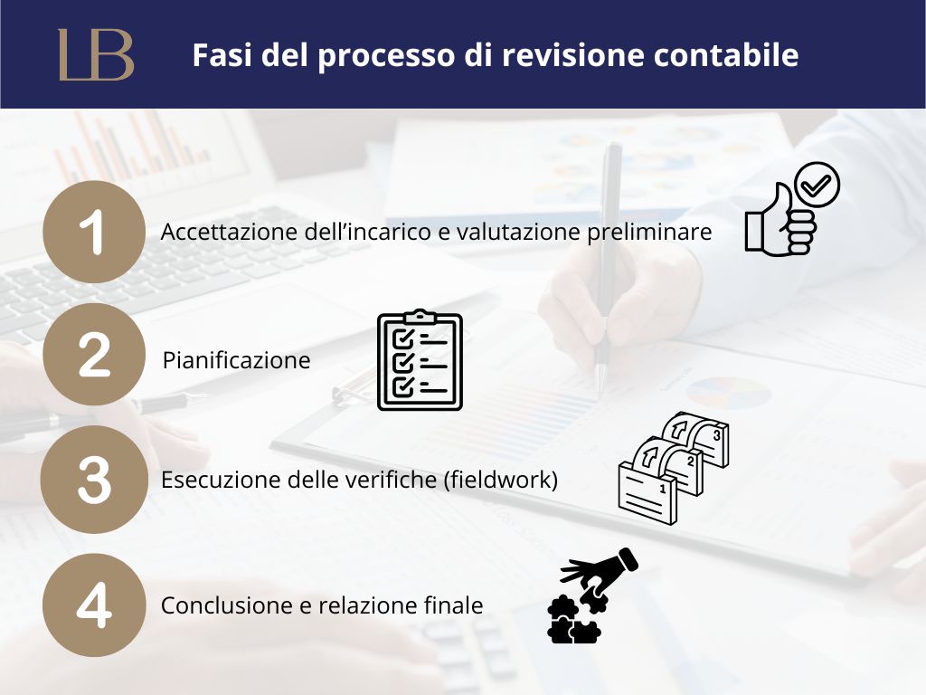 Il processo di revisione contabile si articola in quattro macro-fasi, ciascuna con obiettivi, strumenti e procedure specifiche: