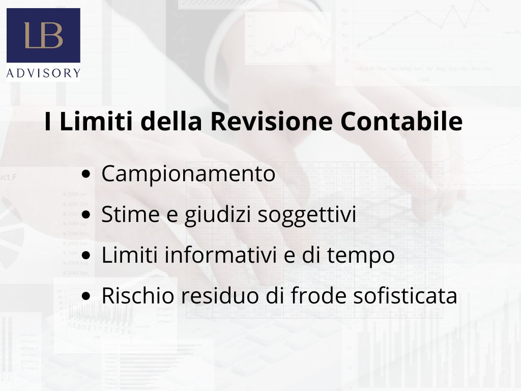 Nonostante la rigorosità del processo, la revisione legale dei conti non garantisce l’assoluta assenza di errori o frodi nel bilancio, ma soltanto una “ragionevole sicurezza”. Alcuni limiti fisiologici sono insiti nell’attività di revisione: