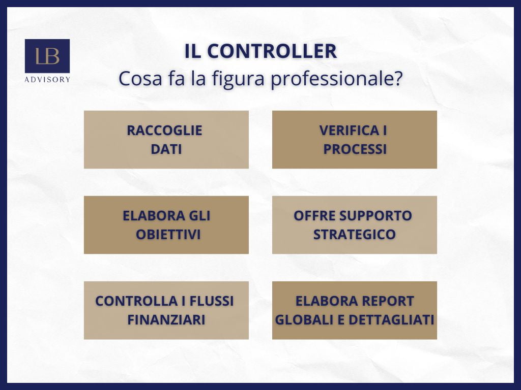 Oltre a queste attività, il Controller ha il compito di valutare i rischi finanziari, supervisionare la conformità alle normative fiscali e finanziarie, e migliorare continuamente i processi di business per aumentare l'efficienza e ridurre i costi.