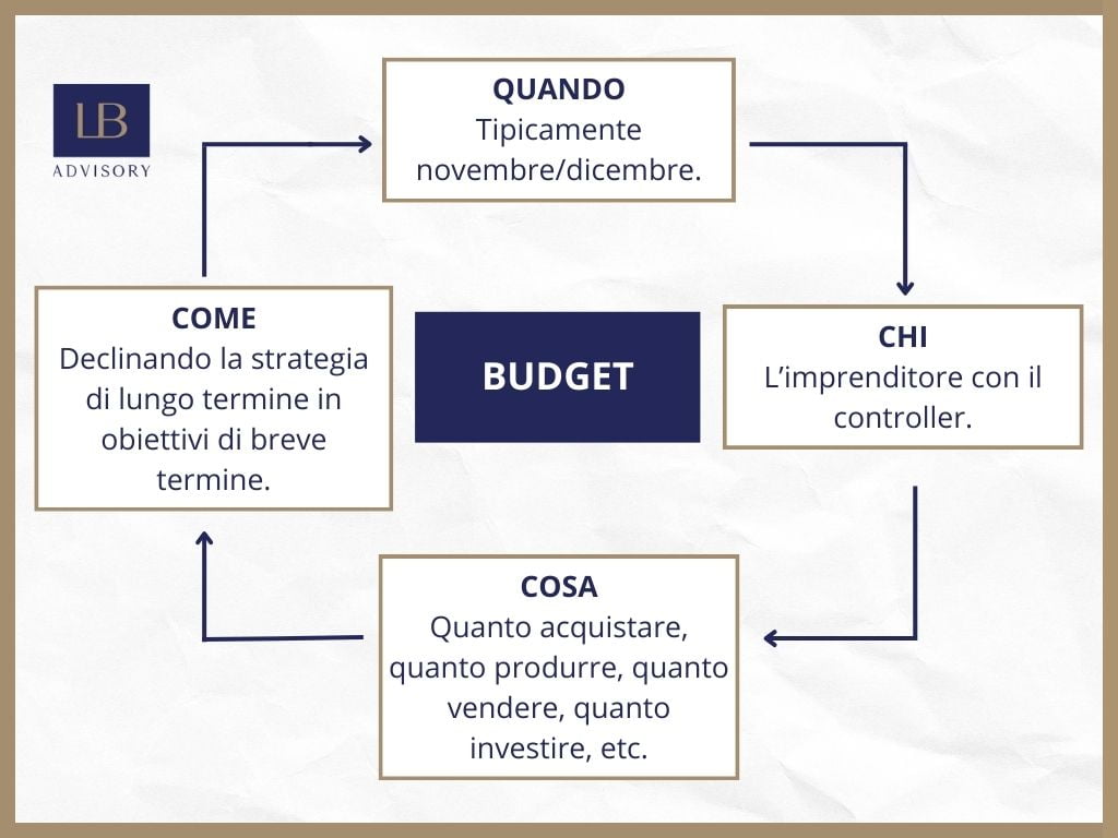 In parole più semplici e inclusive, il budgeting è il programma di cose da fare per l’anno successivo o comunque per i successivi 12 mesi: quanto acquistare, quanto produrre, quanto vendere, quanto assumere, quanto investire, etc.