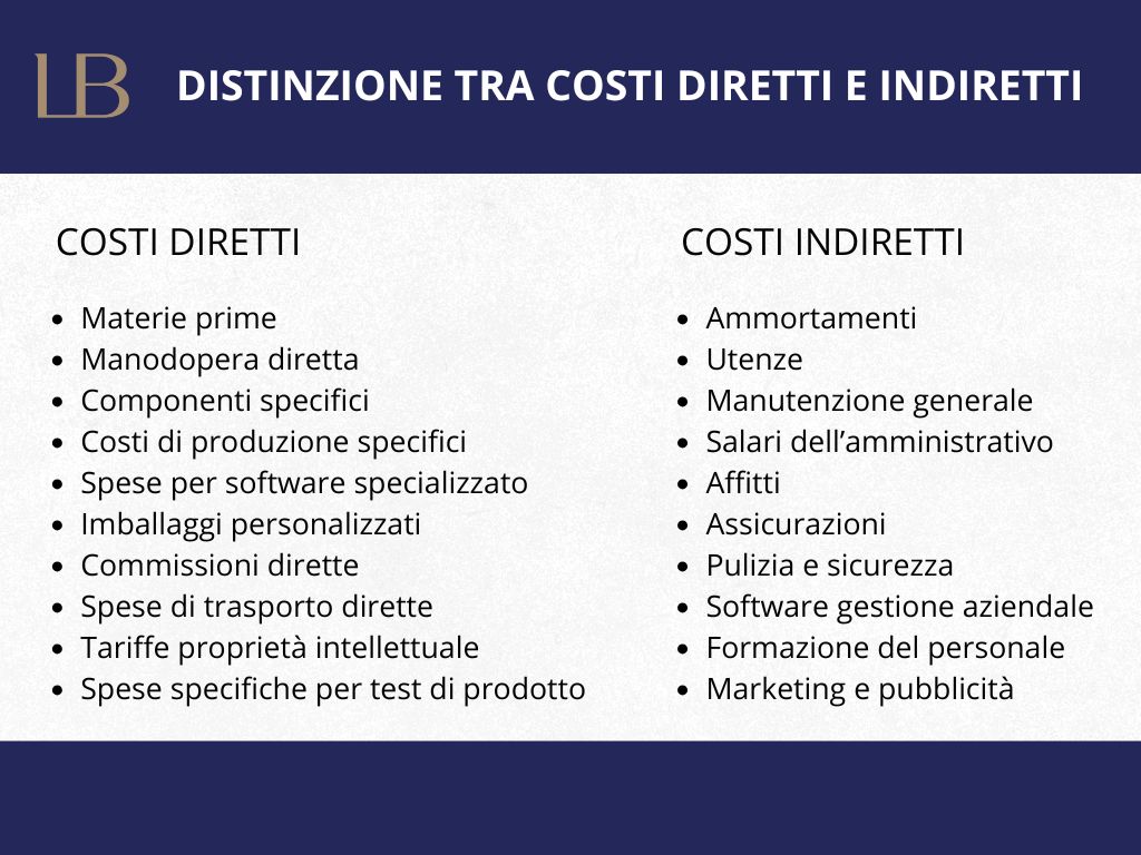Per i fini di questo articolo è particolarmente rilevante concentrarsi sui costi diretti e indiretti. Questi due tipi di costi sono fondamentali per l'allocazione corretta delle risorse all'interno delle aziende e per l'analisi della redditività dei vari segmenti operativi.