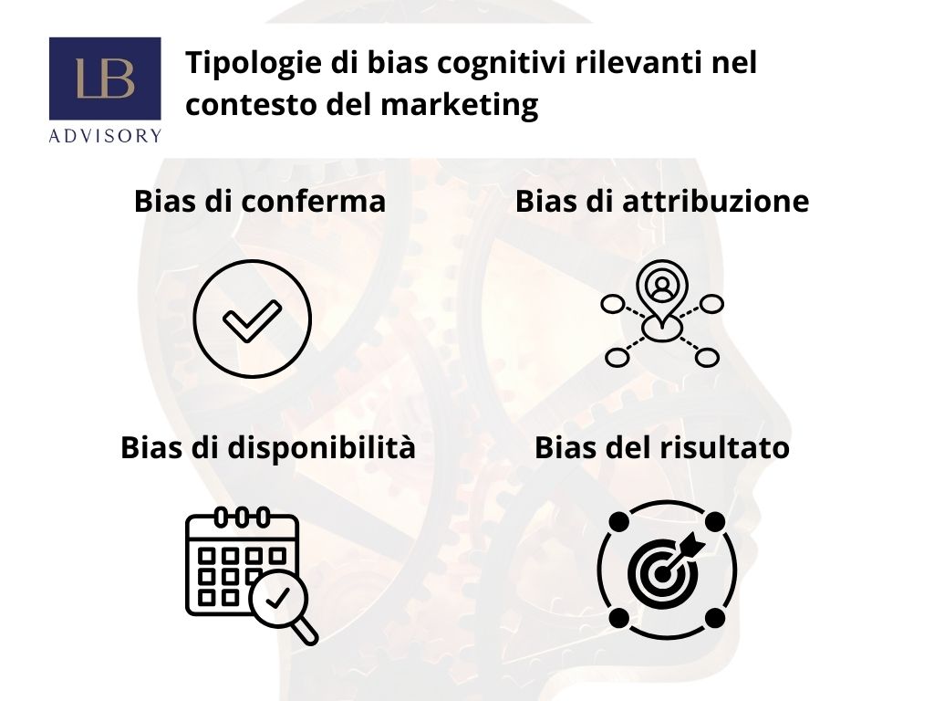 Esistono numerosi bias cognitivi che possono influenzare le decisioni di marketing. Di seguito, esaminiamo alcuni dei più rilevanti:
