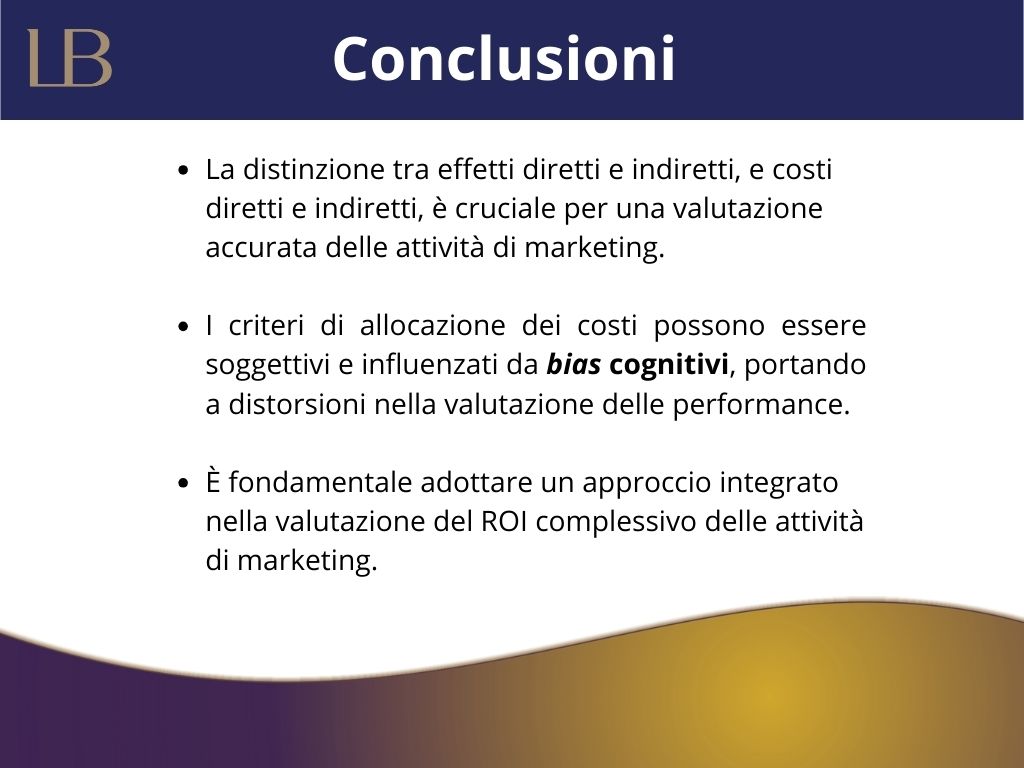 In primo luogo, è emerso che la distinzione tra effetti diretti e indiretti, e costi diretti e indiretti, è cruciale per una valutazione accurata delle attività di marketing.