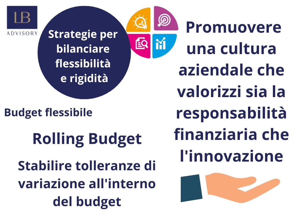 Per evitare gli estremi di rigidità e flessibilità, è importante che le aziende adottino un approccio equilibrato, che combini la disciplina finanziaria con la capacità di adattarsi ai cambiamenti. Un modo per raggiungere questo equilibrio è attraverso l'uso di budget flessibili o rolling budget, che vengono regolarmente aggiornati per riflettere le condizioni di mercato e le performance aziendali in tempo reale. Questo tipo di budget consente di mantenere una struttura finanziaria solida, pur offrendo la flessibilità necessaria per reagire a nuove opportunità o minacce.
