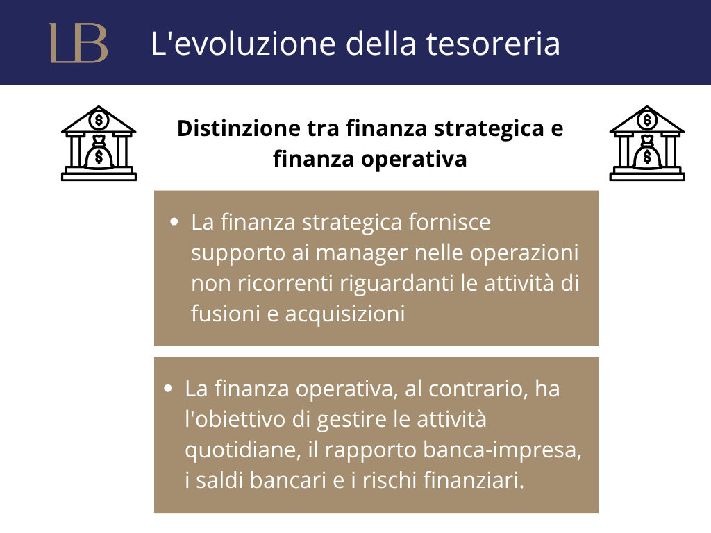 La comprensione del nuovo ruolo della tesoreria passa necessariamente attraverso la distinzione tra finanza strategica e finanza operativa. Le attività della finanza possono quindi essere suddivise in due macro-categorie fondamentali che operano con logiche e orizzonti temporali differenti.