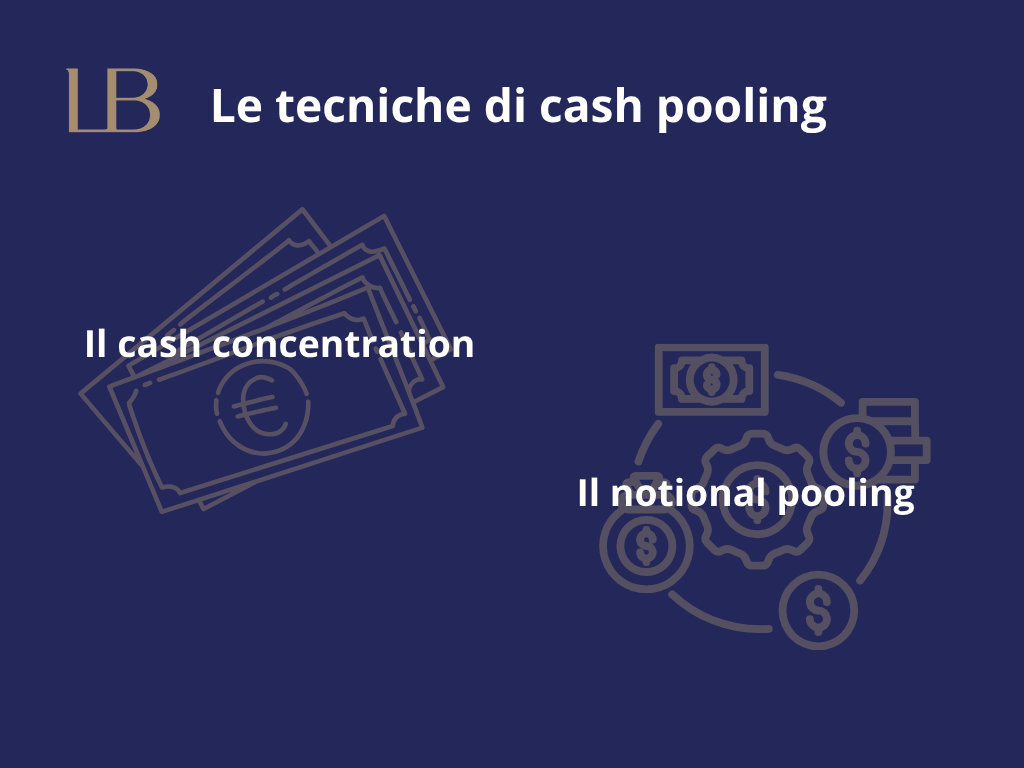 Il cash pooling può essere implementato attraverso diverse tecniche operative, ciascuna con caratteristiche specifiche che si adattano a diverse esigenze organizzative e normative. Le tecniche principali sono il cash concentration e il notional pooling.
