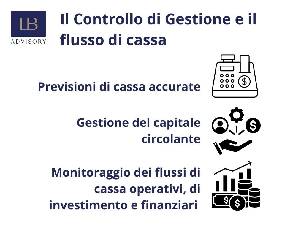 Il flusso di cassa rappresenta la quantità di denaro che entra ed esce dall'azienda in un determinato periodo di tempo. Un Controllo di Gestione efficace si concentra su previsioni di cassa accurate, che permettono di prevedere in anticipo eventuali problemi di liquidità e di adottare contromisure. Una previsione del flusso di cassa ben strutturata permette di monitorare non solo i flussi entranti, come i ricavi, ma anche quelli uscenti, come spese operative, fornitori e investimenti.