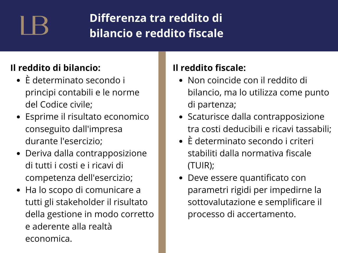 Il reddito di bilancio e il reddito fiscale sono due configurazioni di reddito che rispondono a finalità diverse e seguono regole di determinazione differenti.